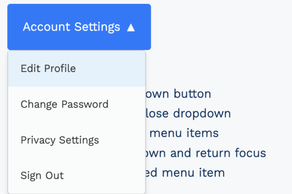 “Create an accessible navigation menu with keyboard and screen reader support. Include ARIA roles and focus management.”